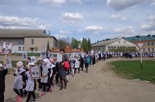 8 май көнне укучыларыбыз сугышта катнашкан әби-бабайлары, туганнары истәлегенә “Үлемсез полк “ акциясендә катнашып, авылыбыз урамнары буенча йөрделәр.