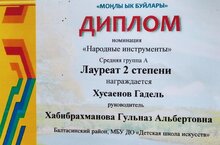 Хөсаенов Гадел "Моңлы ык буйлары" дип аталган фестивальдә 2нче дәрәҗә лауреат дипломына лаек булды. Котлыйбыз