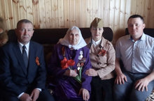 Бөрбаш авылында яшәүче Бөек Ватан сугышы ветераны Нурҗиһан Хөснетдинова котлаулар кабул итә.
