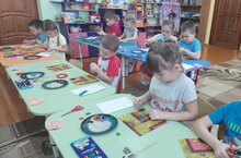 Дети старшей группы на занятии по аппликации учились делать Новогоднюю открытку.Закрепили навыки и умение резать ножницами прямоугольник по диагонали, круг из квадрата.