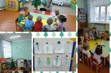 Цель: воспитывать бережное отношение к деревьям.Научить детей распознавать разновидности деревьев и произносить их названия. Продолжаем учить рисовать вертикальные линии зеленой гуашью.