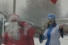 Буген, бакчабызга кыш бабай белэн кар кызы килде. Алар нэнилэрне тэрэзэ аша сэлэмлэп йорделэр.
