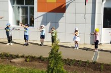 Уртанчылар һәм зурлар төркеме балалары иртәне урамда зарядка ясаудан башладылар. -