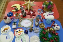 Әти-әниләр белән берлектә мәктәпкә хәзерлек төркемендә Яңа ел уенчыклары ясау./ Совместно с родителями подготовительной группы изготовление новогодних игрушек.
