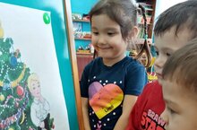Кечкенәләр төркемендә "Камил чыршы янында"дип исемләнгән картина карау. Балаларда Яңа ел бәйрәме уңаеннан яхшы кәеф, шатлык хисләре булдыруга шартлар тудыру./ Вызвать у детей хорошее настроение, радость в связи с Новым годом.