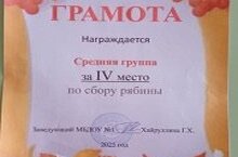 Наша средняя группа заняла 4-е место в детском саду по сбору рябины!