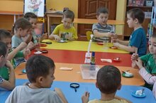 Кече яшьтәгеләрнең икенче төркеме балалары, бик кызыксынып,ап ак карны күзәттеләр. Карның салкын икәненә, җылыда суга әйләнгәненә төшендедәр.