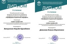 Кечкенәләр төркеме тәрбиячеләре: Валиуллина Фәридә Нурзадовна һәм Даминова Ясминә Маулетовна ОРПО ИРО РТ сайтындагы "Профориентационный марафон" конкурсында катнашып 2 дәрәҗәдәге Диплом белэн буләкләнделәр/