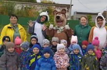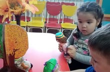 Сегодня в гости к младшей группе пришли «Сюмбеля и Медведь». Дети рассказали им стихи про осень и спели свои песни.
