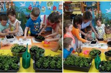 "Эковесна" айлыгы кысаларында уртанчылар төркеме балалары тәрбиячеләр белән бергә чәчәк үсентеләре күчереп утырттылар, аннан аларга су сиптеләр.