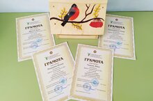 Воспитанники старшей группы награждаются грамотами за призовые места на районном конкурсе "Кормушка своимируками" Воспитатели: Гильмутдинова Г.Р.,Альмухаметова Г.Р.