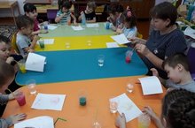 Дети средней группы во время кружковой деятельности с помощью опыта изучали воздух и его свойства.