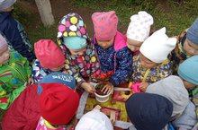 Ребята средней группы совершили экскурсию в осенний сад и закрепили знания о природе.
