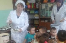 "Яраткан апаларыбыз" проекты кысаларында уртанчылар төркеме балалары шәфкать туташы һәм пешекче хезмәте белән танышып,әлеге хезмәткәрләрнең эш урыннарын кузәтте./В рамках проекта "Работники нашего детского сада" дети средней группы познакомились с профессиями "Повар", "Медицинская сестра" и посетили кабинет мед.сестры и кухню.