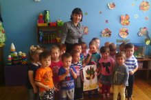 Кече яшьтэгелэрнен икенче торкемендэ тэрбиялэнуче балалар коз проекты кысаларында козге яфраклардан панно ясадылар.