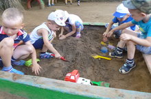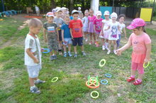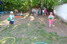 Бакчабызда төрле эстафета- ярыш уеннары оештырылып тора. Балалар бик телэп катнашалар.