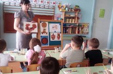 Уртанчылар төркеме балалары яраткан тәрбиячеләре Әлфия Гилван кызы белән бергәләп Бөек Җиңунең 70 еллыгына багышлап ясаган альбомнарны карадылар. Тәрбиячеләре аларны сугыш чоры балаларының каһарманлыклары белән таныштырды, батырлык төшенчәсенең мәгънәсен аңлатты, ә альбомны карап бетергәч хикәя ярдәмендә балаларга бүгенге көн батырлыгы турында мәгълүмат бирде, сугыш чоры балаларына һәм бүгенге көн батырларына карата хөрмәт тхисләре уятты.