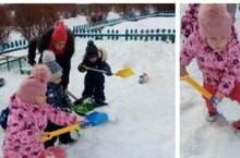 Кеченәләр төркеме балалары тәрбияче белән берлектә уен мәйданчыгын кардан чистарттылар.