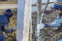 Дети продолжают помогать благоустраивать, улучшать, поддерживать чистоту и порядок. В рамках экологических акции регулярно проводятся разные виды санитарной очистки. После первого субботника, когда обрезали деревьев, прошло немного времени но природа бурно проснулась и уже пришла пора побелки деревьев. Весенняя побелка призвана защитить деревья от солнца и проснувшихся после зимней спячки вредителей.