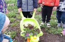 Сегодня дети младшей группы вместе с Эколятами посадили цветы и кустарники.