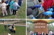 Мәктәпкә хәзерлек төркеме балалары чишмә җыештыру акциясендә катнаштылар. Чүп-чарны җыеп, "Салкын чишмә" территориясен тәртипкә китерделәр.