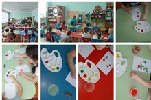 Бүген уртанчылар төркеме балалары рәсемләү шогылендә төрле алымнар кулланып гуашь белән чәчәкләр ясарга өйрәнделәр.