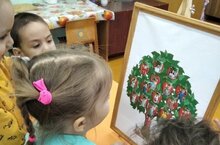 Дети младшей группы сделали дерево своей группы. На яблоки яблони они приклеили свои фотографии.