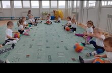 Икенче кече яшьтәгеләр төркеме балалары физик тәрбия бирү шөгылендә туп тәгәрәтәләр./ Дети второй группы раннего возраста перекатывают мячи на занятиях по физической культуре. 14.12.2023