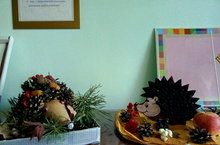 Младшая группа организовала выставку поделок "Осенние богатства"