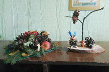 Кечкенәләр төркеме күркәләрдән ясалган кул эшләреннән күргәзмә оештырдылар.