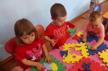 Дети второй группы раннего возраста с удовольствием собирают пазл.