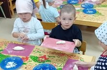 Икмәк көне уңаеннан кечкенәләр төркеме балалары тозлы камырдан икмәк "пешерделәр"./ В день хлеба дети младшей группы "испекли" хлеб из соленого теста. 16.10.2024
