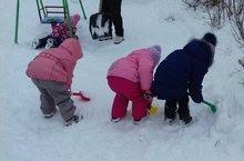 Бакчабызның балалары мәйданчыкларын күпләп яуган кардан чистартырга булышалар.