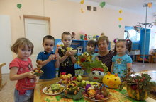 Зурлар төркемендә "Җиләк-җимеш, яшелчәләр!" проектын тәмамлап балалар әти-әниләр белән кул эшләреннән күргәзмә ясадылар!