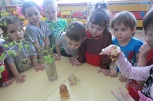 Икенче кечкенәләр төркеме балалары суганнын үскәнен зур кызыксыну белән күзәтәләр.