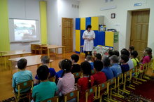 Медицинская сестра Альфия Закиевна провела беседу с воспитанниками подготовительной к школе группы по профилактике гриппа.
