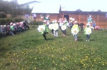 Буген безнең бакчабызда, халкыбызның милли бәйрәме - Сабантуй булып утте. Бәйрәмебез матур итеп бизәлгән спорт мәйданчыгында узды. Һәркем үзенең осталыгын күрсәтте: кемдер җырлады, кемдер биеде, капчык киеп йөгерү һәм тагын бик куп татар халык уеннары уйналды. Балалар уеннарда катнашып күңел ачтылар... Бүген бездә Сабантуй - эшләреңнен барын куй! Тизрәк йөгер мәйданга, Бәйрәм башлана анда!