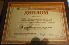 Безнең балалар бакчасы Татарстан Республикасы мәгариф һәм фән министрлыгының "Татарстан Республикасы- 2017 ин яхшы белем бирү учреждениесе" исеменә лаек булды.