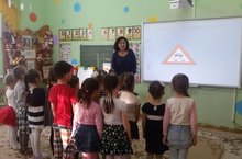 Балаларга куркынычсызлык кагыйдәләрен өйрәтүдә яңа технологияләр кулланып эшләү яхшы нәтиҗәләр бирә. Сыйфатлы, ачык итеп эшләнгән рәсемнәр баланың игътибарын җәлеп итә, бирелгән мәгълүматны истә калдырырга ярдәм итә. Икенче кечкенәләр төркемендә “Сак булыгыз!” дип исемләнгән танып белү эшчәнлегендә балалар әйләнә - тирәлектә бала тормышы өчен куркыныч булган әйберләр белән таныштылар.