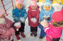 “Исәнме, салкын Кыш” проектында, сөйләм үстерү эшчәнлеген балалар табигаттә дәвам иттеләр. Ә. Бикчәнтәеваның ”Салкын, саф һава” шигырен ак карга сөйләп өйрәнделәр.