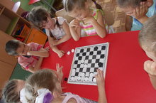 Мәктәпкә әзерлек балалары өстәл уеннарын бик яратып уйныйлар. Тәрбияче Рәзинә Камилевна балаларны шашка уйнау серләренә өйрәтә.