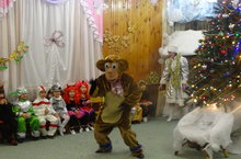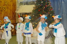 Зурлар төреме балалары бәйрәмгә "снеговиклар" булып киенеп килделәр. Алар килгән кунакларга үзләренең матур җырларын, шигырьләрен, биюләрен бүләк итеп, яңа ел белән котладылар.