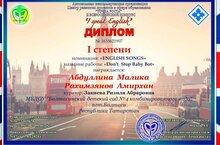 Воспитанники подготовительной к школе группы Абдуллина Малика, Рахимзянов Амирхан награждены дипломом l степени, за участие во ll Всероссийском конкурсе "I speak English ". Центра развития проектов в сфере образования "Точка роста". Поздравляем!
