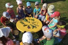 Бүген зурлар төркеме балалары балалар бакчсаы территориясендә үскән дару үләннәре белән таныштылыр./Сегодня дети старшей группы ознакомилиь лекарственными растениями.