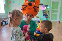 Безнең белән уйна син. Икенче кечкенәләр төркеме балалары буген аю белән хәрәкәтле уеннар уйнадылар .