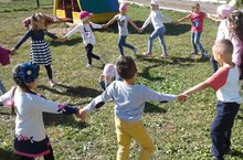 В режимные моменты, в ходе подвижных игр, в непосредственном общении с детьми коммуникативно вводятся и активизируются речевые конструкции разговорной речи.Сегодня во время прогулки дети подготовительной группы играли в игры «Зайцы и волк», «Водяной». Все дети были рады и довольны./ Режим моментларында, хәрәкәтле уен уйнаганда, балалар белән турыдан- туры аралашканда балаларның сөйләм теле шомара, активлаша. Бүген прогулка вакытында мәктәпкә әзерлек төркеме балалары бик теләп “Бүре һәм куяннар”, “Су иясе” уеннарын уйнадылар. Балаларның йөзендә елмаю уен беткәнче дәвам итте, барысы да бик канәгать иде.