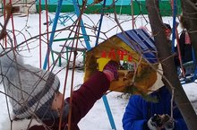Балалар саф һавада кышлаучы кошларны ашаталар