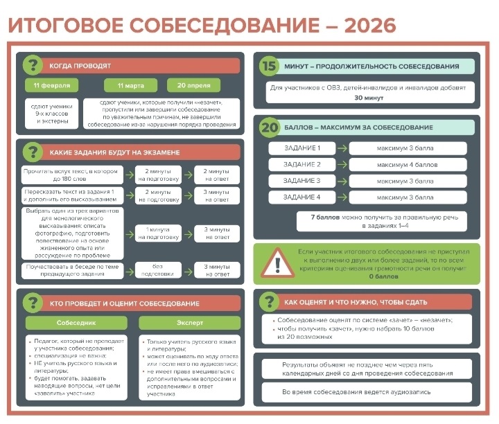 Итоговое собеседование для 9 классов проводится 11 февраля 2026 года.