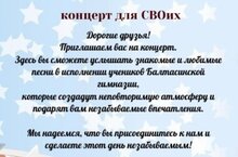МБОУ «Балтасинская гимназия» организовывает концерт для СВОих. 25 сентября в 14.00 мы будем рады видеть участников СВО, ветеранов, родных бойцов.