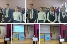 В рамках недели школьного ученического самоуправления для 5-11-х классов лидеры отрядов ДОО «Галстучная страна» рассказали все о детской организации. Мероприятие начали с гимнов России и Татарстана.